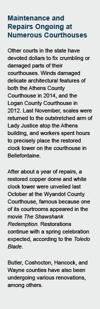 Many of the state’s original courthouses were constructed in the late 1800s or early 1900s. Some of these architectural treasures have fallen into disrepair, and to endure, they often require steep investments. Ohio’s court officials have grappled with a dilemma — renovate or build new?